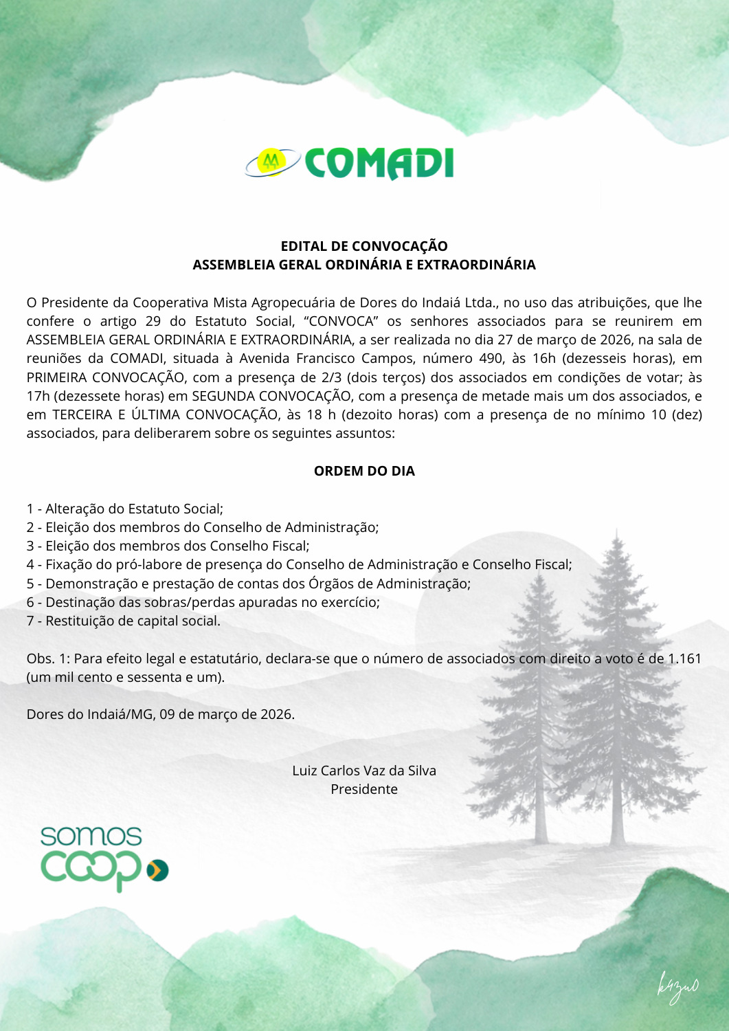 Comunicado publicado em 09/03/2026